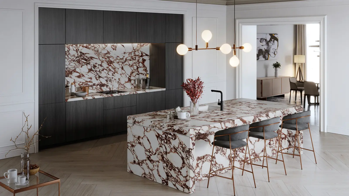 BAJO EL NOMBRE DE VIOLA, LA FIRMA HA PERFECCIONADO LA APARIENCIA Y UTILIDAD DE ESTE COMPACTO MINERAL SINTERIZADO CON PIEZAS MÁS NATURALES E HIPERREALISTAS QUE IMITAN A LA PERFECCIÓN LA SUAVIDAD Y LAS VETAS DEL CALACATTA ORIGINAL. DISEÑADA EN DOS TONALIDADES (ROSSÉ Y BLUE) Y CON UNA DESTACADA RIQUEZA GRÁFICA, VIOLA SE PUEDE UTILIZAR COMO PAVIMENTO, REVESTIMIENTO O ENCIMERA EN SUS ACABADOS POLISHED Y SILK.
